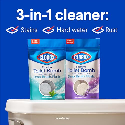 3 IN 1 CLEANER: Clorox Foaming Toilet Bomb Toilet Bowl Cleaner cleans stains, hard water and rust to help keep your toilet bowl smelling fresh and looking