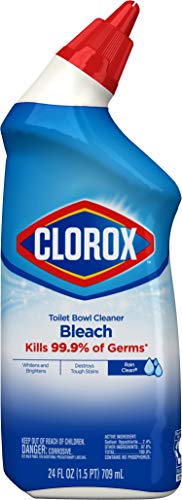 BLEACH TOILET BOWL CLEANER: Kills 99.9% of germs, and whitens and brightens your toilet bowl with the power of Clorox Bleach and leaves a refreshing Rain Clean Scent; Package may vary