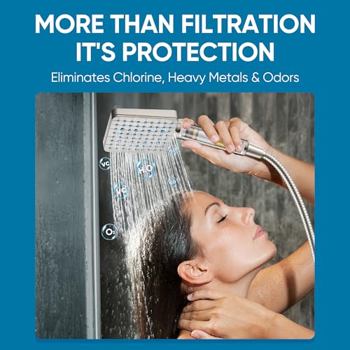 ?Purify the water?:Health is the thing we value most. Our showerhead has a quadruple 15-stage powerful filtration layer. It effectively removes impurities and residual chlorine, heavy metals (lead, mercury, nickel, chromium) and other harmful substances from the water. Enjoy your shower and improves your skin and scalp environment. Improves your health.