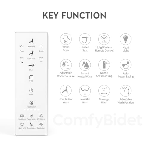 MULTIPLE FUNCTIONS: Includes front and rear wash modes, adjustable water temperature (4 temperature settings?Normal?91??97??102?), water pressure (4 levels), heated seat (4 levels?Normal?91??97??102?), and warm air dryer for complete comfort