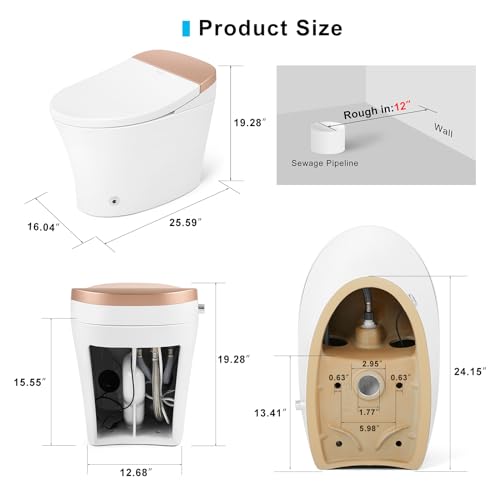 [Comfort Height Toilet]: Seat size is 25.86''*15.55''*19.29'', more comfortable for sitting and getting up.Tankless Toilet design: Small and stylish, saving space