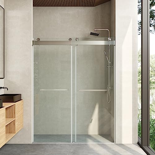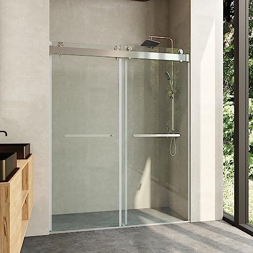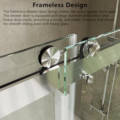 ?[SAFETY & TRANSPARENT] Frameless Sliding Shower Door is made of 3/8" (10mm) Tempered Glass certified by ANSI, has explosion-proof, splash-proof, each piece of our glass is easy to clean over, he has stain-resistant effect, take out the stains easily, safety frameless glass shower door makes your bathroom look brighter and more modern.