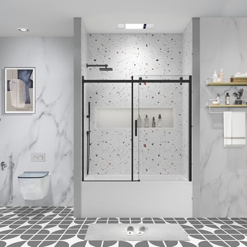 [Flexible Adjustment]: This single sliding shower door is 56-60 inch Width x 58 inch Height. Walk-in: 20 1/2"~24 7/16" (It allows up to 4 inches for width adjustment by trimming the guide rails). For out-of-plumb, wall profiles accommodate up to 3/8" (10mm). The reversible design allows for custom installation, sliding to the right or left according to your preference.