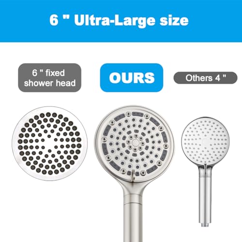 Luxurious Shower Experience: Indulge in a spa-like shower with our ultra-large 6-inch showerhead, unlike the standard 4-inch size. Feel the difference!