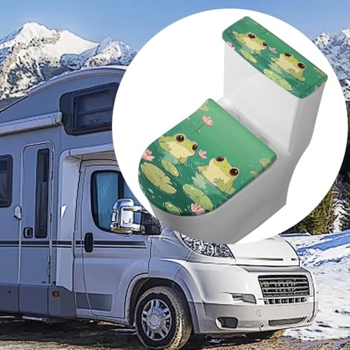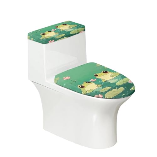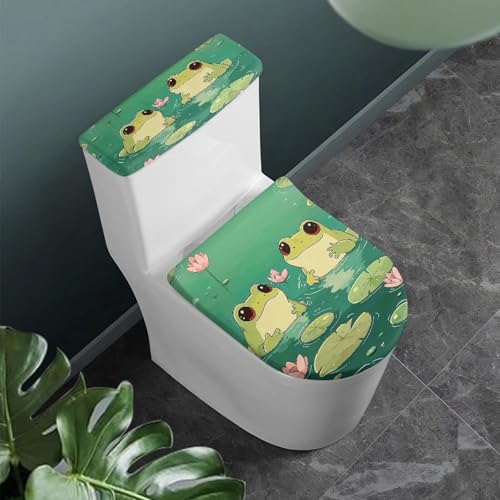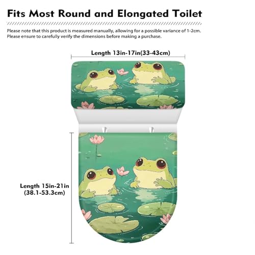 Darisoco Cute Green Frog Toilet Lid & Tank Covers Set of 2 Toilet Seat Cover Protector Elongated Lids with Elastic Edge for Bathroom