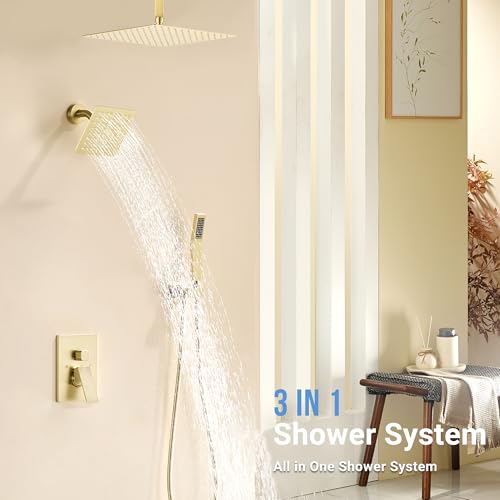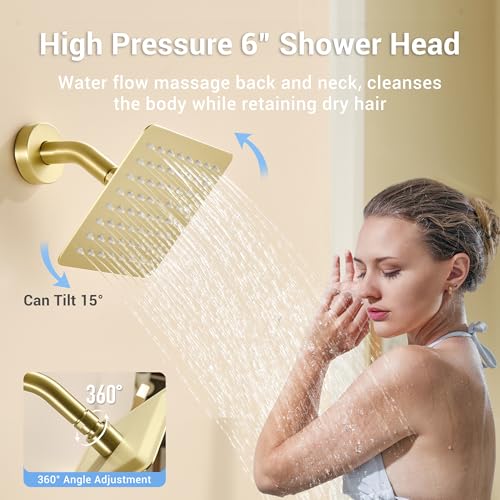 Luxurious Dual Shower Heads: This shower system features a 12-inch overhead rainfall showerhead and a 6-inch wall-mounted showerhead, both adjustable to 360°. Enjoy a spa-like luxury at home while finding your perfect relaxation angle.
