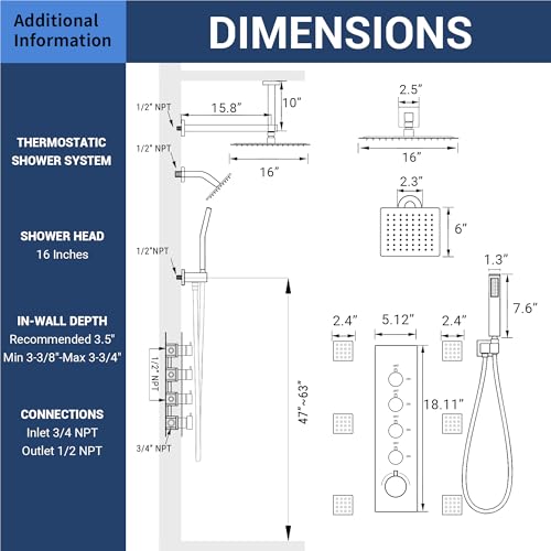 Dual Shower Heads for Couples or Families?Features a 6-inch high-pressure wall-mounted head and a 16-inch ceiling-mounted rainfall head. Enjoy full-body coverage with high-pressure rainfall for a spa-like experience.