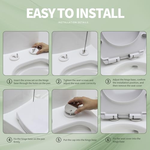 [Quick Release for Easy Cleaning] The seat is equipped with a button on its side which upon clicking detaches the toilet seat and cover for easy cleaning. You can now remove or release quickly and easily without requiring tools.