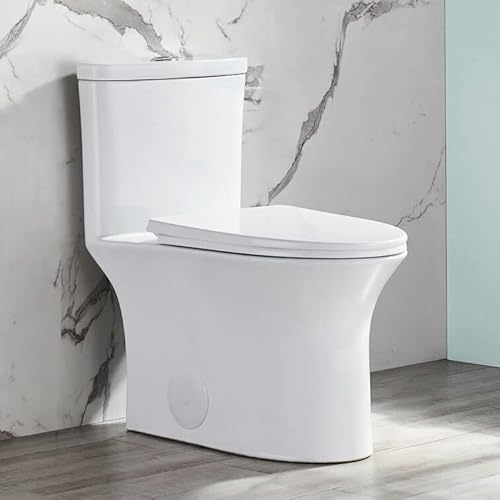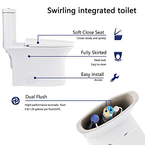 ?[EASY TO CLEAN WITH FULLY SKIRTED TRAPWAY DESIGN]: Elongated one-piece toilet with concealed trapway design is easy to keep clean with fewer crevices than a larger, standard two-piece toilets.It has no corners and grooves and is very easy to reach for cleaning.