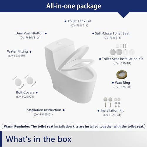 What You Can Get: The package Includes toilet, pre-installed soft closing toilet seat, pre-installed flush valve, high-quality wax ring, floor bolts, and also installation instruction. DeerValley toilet is covered by a 1-year warranty.