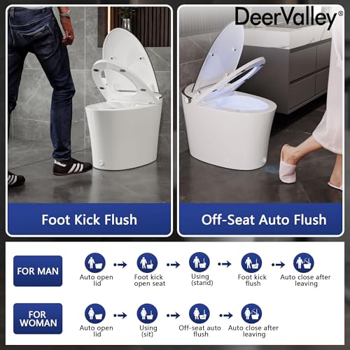 Effortless Operation: Embrace hands-free convenience with smart toilet features that anticipate your needs. The lid opens automatically upon your approach and flushes automatically after use. Utilize the foot kick sensor for easy lid and seat operation, as well as flushing, with a simple foot gesture.