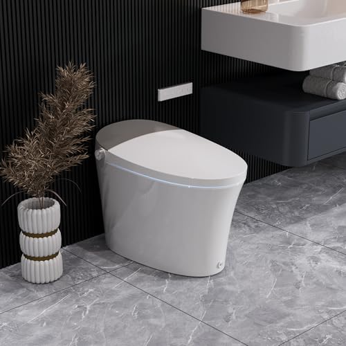100% Touch-Free Luxury: Embrace next-generation hygiene technology - The lid automatically rises upon your approach and initiates self-cleaning flush cycles after use. Indulge in spa-level cleansing with immediate warm water flow and comfortable warm air drying.