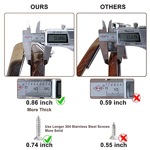 ?Heavy Duty Toilet Seat?Refuse the easily damaged toilet seat, our wooden toilet lid is heavy duty toilet seat, weighing 5 lbs, the thickness is 0.86" and is support up to 400 lbs, will not bend or split.