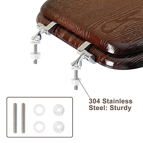 ?Durable Chrome Hinges?Deewow wood toilet seat equipped with chrome hinges and bolt of stainless steel which can fixed on toilet bowl, it will not get loose.