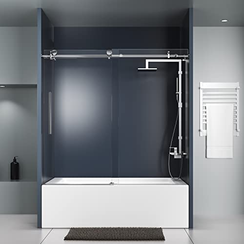 STURDY AND ENDURING STRUCTURE: The frameless bathtub door is made of high-quality materials, featuring a strong and enduring design. Its superior stainless steel frame ensures excellent corrosion resistance, rust prevention, and resistance to daily wear and tear, maintaining its modern and stylish appearance for a long time. The high-quality stainless steel rollers and track work seamlessly together, providing an incredibly smooth sliding experience.