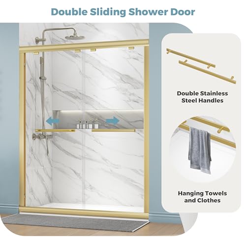 Bypass Double Sliding Shower Door - This sliding shower door features double sliding doors design, providing users with great convenience and flexibility. Equipped with two premium stainless steel handles, the design is exquisite and the grip is comfortable, making it more convenient for users to enter and exit the shower area. Whether from inside or outside the bathroom, it can be easily opened to ensure a smooth experience during use.