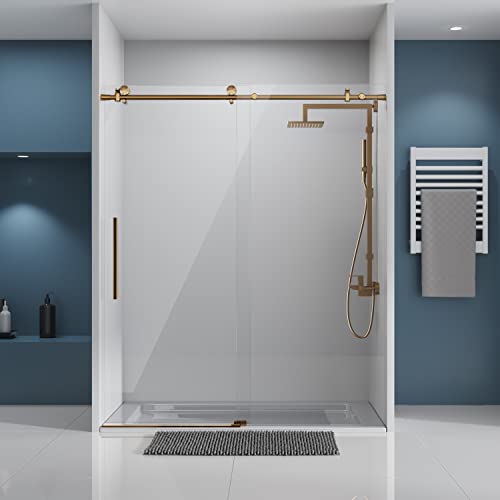 ????DESIGNED FOR CONVENIENCE - 56-60 in W x 75 in H. The adjustable width of this frameless sliding door makes it suitable even for small spaces. The reversible door of the shower slides to the right or the left, depending on your preference. With this sliding tub door, taking a bath or shower become available. PLEASE NOTE that if the width of the shower space is less than 58 inches, the upper guide rail will need to be cut before installation.