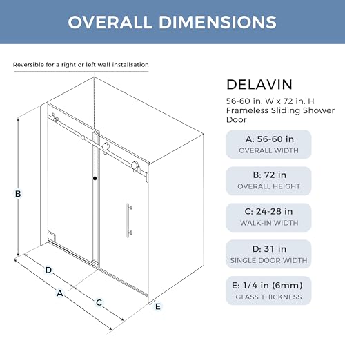 Flexible Design and Modern Aesthetics - This modern minimalist design frameless shower door perfectly blends fashion and practicality. Its width can be adjusted by cutting between 56 and 59 inches to meet the needs of different bathroom spaces. And the shower door supports reversible installation on both sides, allowing users to freely choose the installation direction according to their personal habits and bathroom layout, greatly enhancing flexibility and convenience.