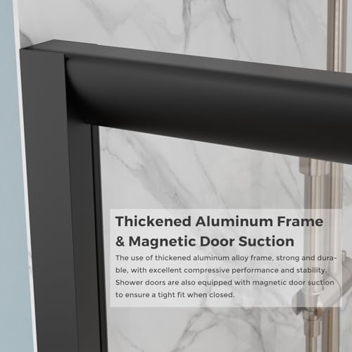 Premium Aluminum Alloy: The DELAVIN semi-frameless shower door features a modern combination of tempered crystal-clear glass and robust aluminum alloy frame to provide lasting durability and ensure smooth gliding for years to come. This stunning shower door comes in a sleek color, adding a touch of modern elegance to your bathroom decor. Dimensions: 60 x 75 in, the top and bottom guides can be cutted appropriately according to different bathroom widths.