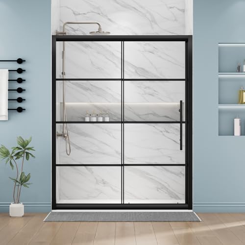 Secure & Stylish Bathroom Partition: DELAVIN shower doors are made of superior 1/4"(6mm) ANSI certified tempered glass for impact resistance and high tensile strength. The shower door glass is designed with exquisite grid patterns, breaking the monotony of the glass and bringing a unique decorative effect to the bathroom, making the entire space more lively and interesting. The surface is covered with explosion-proof film, increase the strength of the glass, avoid the splinters splashing hurt.