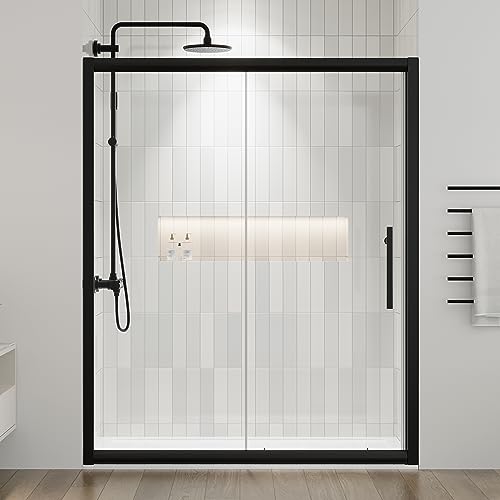 PREMIUM BLACK ALUMINUM ALLOY: The DELAVIN semi-frameless shower door features a modern combination of tempered crystal-clear glass shower door and robust aluminum alloy frame to provide lasting endurance and ensure smooth gliding for years to come. This stunning shower door comes in a sleek black color, adding a touch of modern elegance to your bathroom décor.