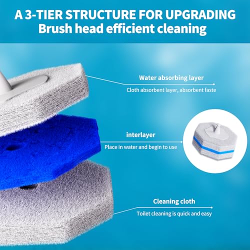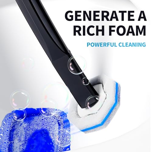 Toilet Cleaning Head: The upgraded octagonal sponge head can clean hard to reach areas below the edge of the bowl and perform deeper and faster cleaning, making the toilet cleaner