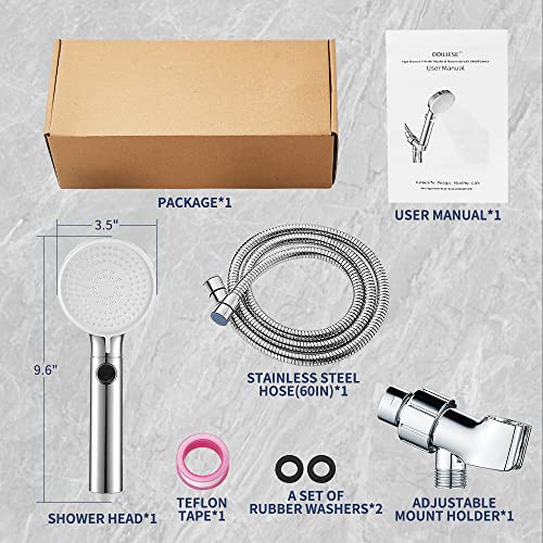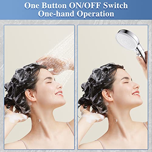 ?One-press Switch Button?With the one button on/off switch design, our shower head offers convenient shower experience and saving water function. Simply press the button of our hand held shower head to stop or turn on the water flow at your will. No need to shut off the water flow. More convenient for the elder or kids to shower.
