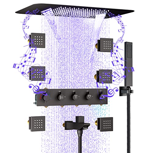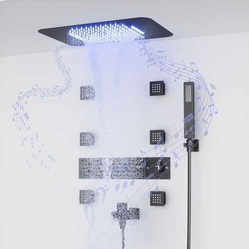 ?LUXURY 64 COLORS LED MUSIC SHOWER SYSTEM?This full body shower system can be controlled via Bluetooth to play your favorite music. You can also enjoy 64 colors LED light changes via remote. Smart overhead shower system adds a sense of ambience and moody beauty to your bathroom. Enjoy the comfort of a luxurious shower.