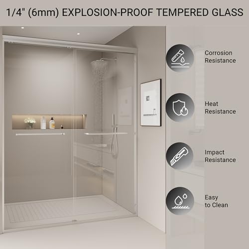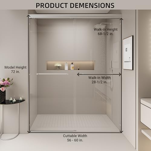 Customizable Dimensions: The double sliding shower door measures 60" W x 72" H, adjustable from 56" to 60" by cutting the guide rail for a tailored fit