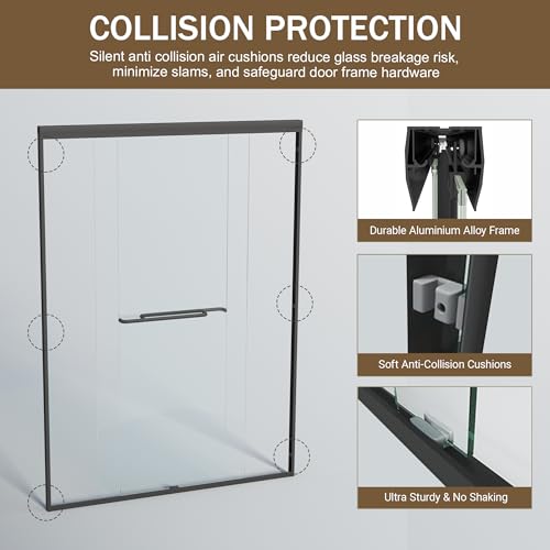 Anti-Leak & Anti-Collision: Full-length clear seals prevent water leaks, while protective corners minimize noise and wall damage during sliding. Smooth-gliding panels ensure quiet operation.