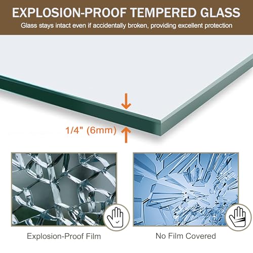 Durable & Safe Glass: Features 1/4" (6mm) ANSI-certified tempered glass with explosion-proof film treatment for enhanced safety. Resists impact, scratches, and breakage for long-term reliability.
