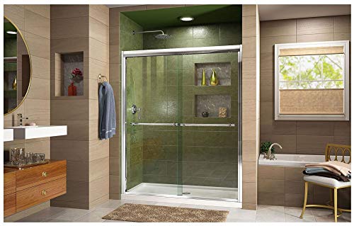 Double sliding bypass configuration allows entry to the shower from left or right side; Semi-Frameless glass design for a streamlined look