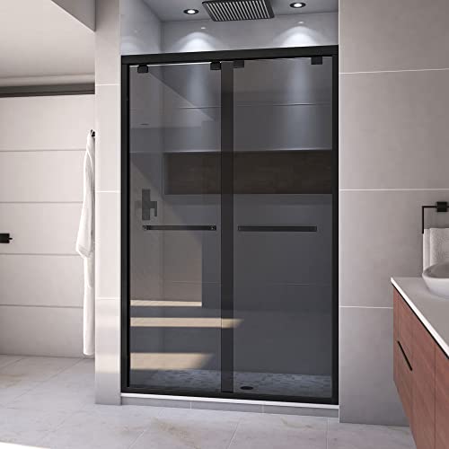 DreamLine Encore 44-48 in. W x 76 in. H Semi-Frameless Bypass Sliding Shower Door in Matte Black and Gray Glass