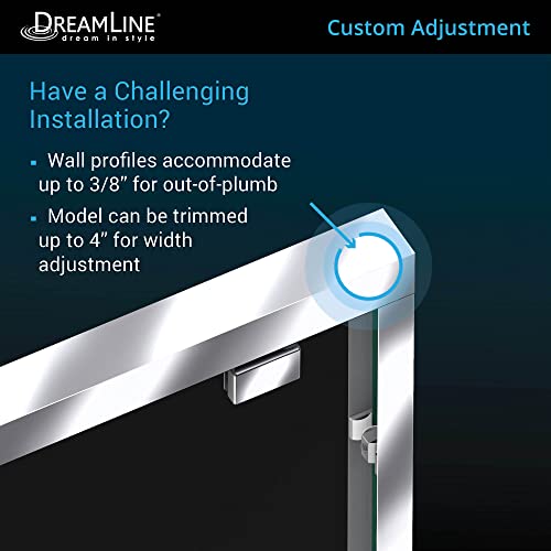 Model can be trimmed up to 4 in. for width adjustment; Wall profiles accommodate up to 3/8 in. for out-of-plumb (uneven walls)