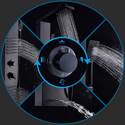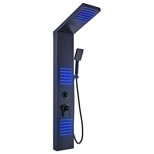 ELLO&ALLO Stainless Steel Shower Panel Tower System, Rainfall Head Rain Massage System with LED Body Jets, Black