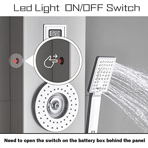 ELLO&ALLO Stainless Steel Shower Panel Tower System,LED Rainfall Waterfall Shower Head 6-Function Faucet Rain Massage System with Body Jets, Brushed Nickel