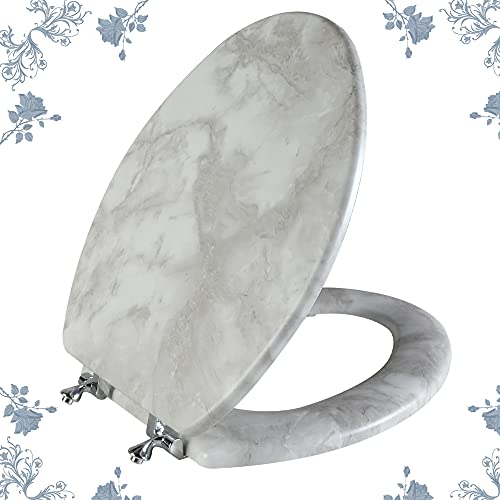 Elongated Marble Toilet Seat Natural Wood Toilet Seat with Zinc Alloy Hinges, Easy to Install also Easy to Clean, Anti-pinch Wooden Toilet Seat by Angol Shiold (Elongated, Gray)