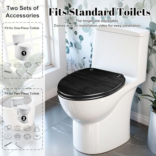 Elongated Toilet Seat Black textured Resin Toilet Seat Slow Quiet Close Lid with Quick-Release Hinges Cover Bumpers Easy to Clean Install