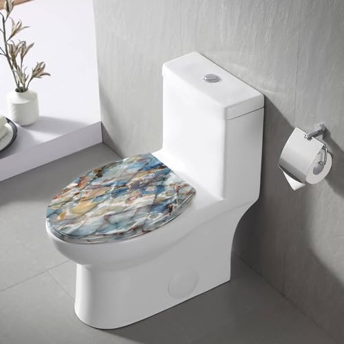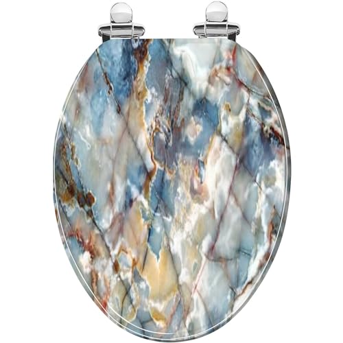 Elongated Toilet Seat Natural marbles texture and surface perfect blue onyx Resin Toilet Seat with Quietly Close Quick Release Hinges Decorative Toilet Seat with Cover Easy to Clean and Install