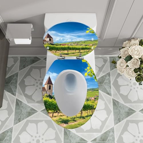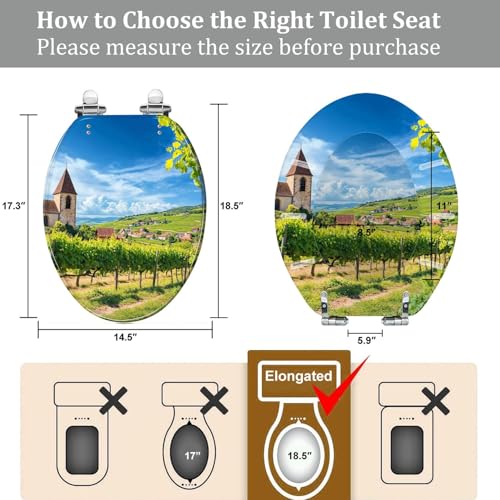Elongated Toilet Seat Old church vineyards Hunawihr village Alsace France Resin Toilet Seat Quietly Close Quick Release Hinges with Cover Bumpers Decorative Easy to Install Clean