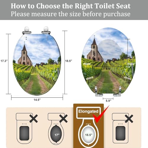 Fits Most Toilets: Our round toilet seat measures 14.5" x 18.5" (Width x Length). We offer two different sets of installation accessories, one for skirter design toilets and one for non-skirter design toilets, and feature adjustable hinges to fit most American standard toilets. If unsure, please ensure compatibility by measuring your toilet before purchase.