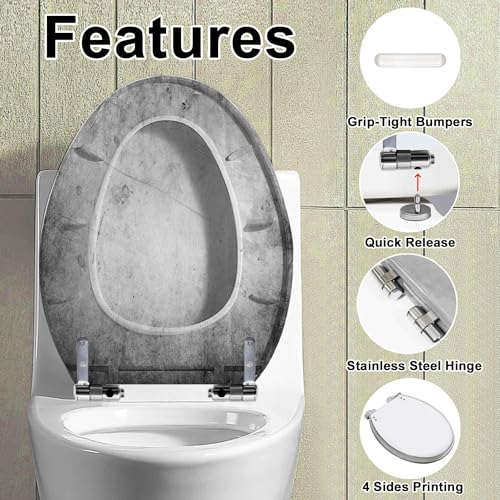 ?Selected Material?Made from heavy reinforced resin, smooth surface and scratch resistant. With metal hinges and bumpers, the modern toilet seat can withstand pressure for better durability and stability, and will not warp or crack over time and temperature changes like molded wood. We use advanced printing and craft to show patterns on 4 sides, no worry about fading.