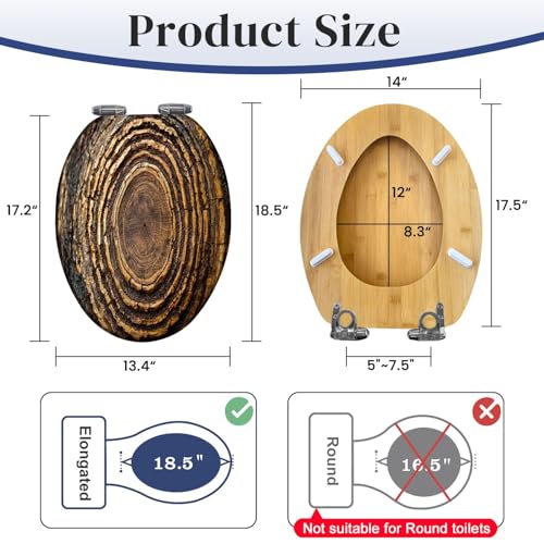 Excellent Quality & Quick-Release Hinges: Our toilet seat is made of wood. It has a porcelain-like smooth touch and high load-bearing capacity. It is very textured and durable. Compared with plastic toilet seats, our wooden toilet seats are suitable for year-round use, and won't get cold to the hips. Quick-release hinges for easy removal to clean the toilet.