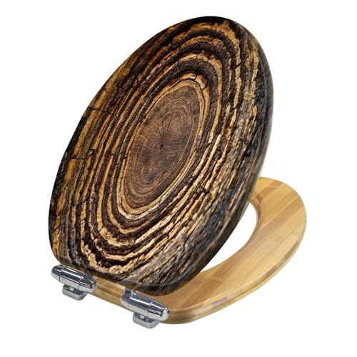 Elongated Toilet Seat Wooden an old wooden rings oak surface close up Wood Toilet Seat Slow Quiet Close Lid with Quick-Release Hinges Cover Bumpers Easy to Clean Install