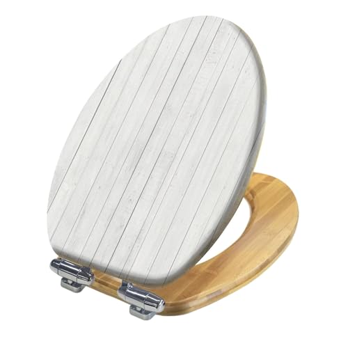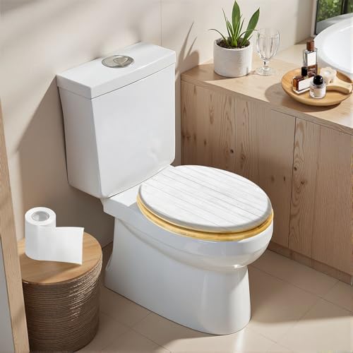 Elongated Toilet Seat Wooden White Wood Wall Texture Wood Toilet Seat Slow Quiet Close Lid with Quick-Release Hinges Cover Bumpers Easy to Clean Install