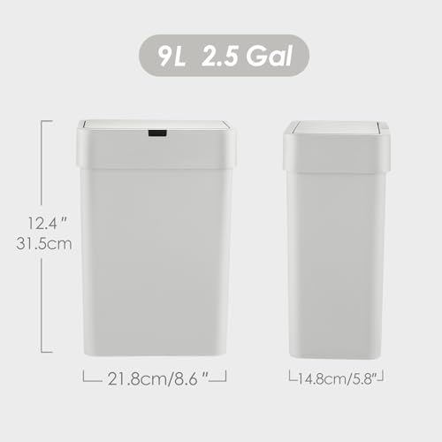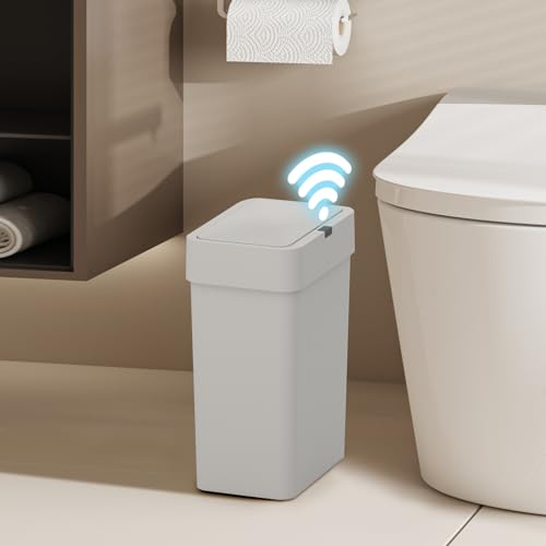 ELPHECO Bathroom Motion Sensor Trash Can with Lid 2.5 Gallon Slim Garbage Can Small Touchless Trash Bin 9.5 Liter Smart Waste Basket for Bedroom, Living Room, Toilet (Grey)