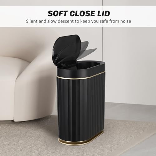 Black Exterior Design - The elegant black color not only makes your trash can less likely to look dirty, but also fits into any style of home for a distinctive decorative piece. (11''L×7''W×12''H, 2 Gallons)