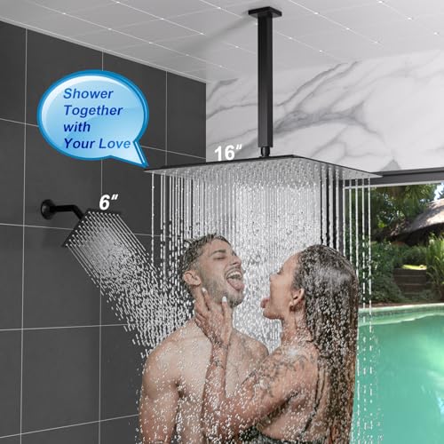 ?Dual Rain Shower Heads System?This luxury full body shower system with enlarged 16-inch ceiling rainfall shower head and a powerful 6-inch wall mounted shower head, both of them can be used together. While the 360° adjustability allows you to find the perfect angle for ultimate relaxation and comfort. A must-have full body shower system for every home seeking a luxurious spa bath!