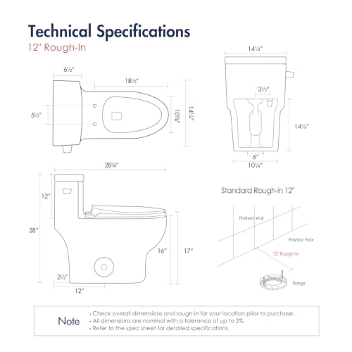 Easy Installation: The 2" fully-glazed trapway for efficient waste disposal, with a 12" rough-in fits most standard bathroom layouts. The soft closed seat cover can be easily replaced just push a button. Package includes a one-piece toilet, soft closing seat, pre-installed flush valve, wax ring gasket, floor bolts, and also installation instruction.