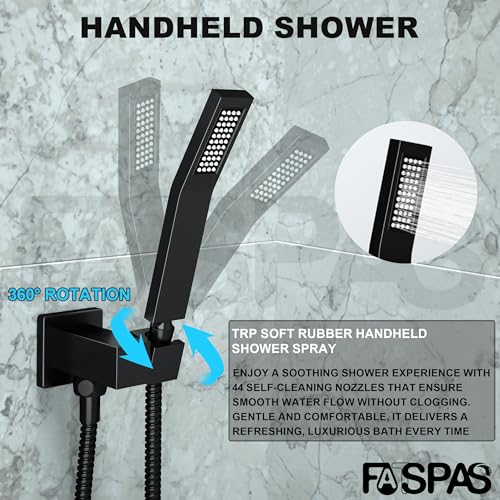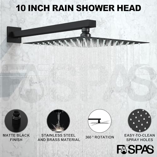 Adjustable Rain Shower Head and Multi Function Shower System: The 10" Ultra-Thin rainfall shower head and handheld shower head can be adjusted flexibly to achieve the perfect angle for your shower area. The matte black shower fixtures allow for easy switching between the rain shower head and the handheld shower head, delivering a wide range of soft rain spray
